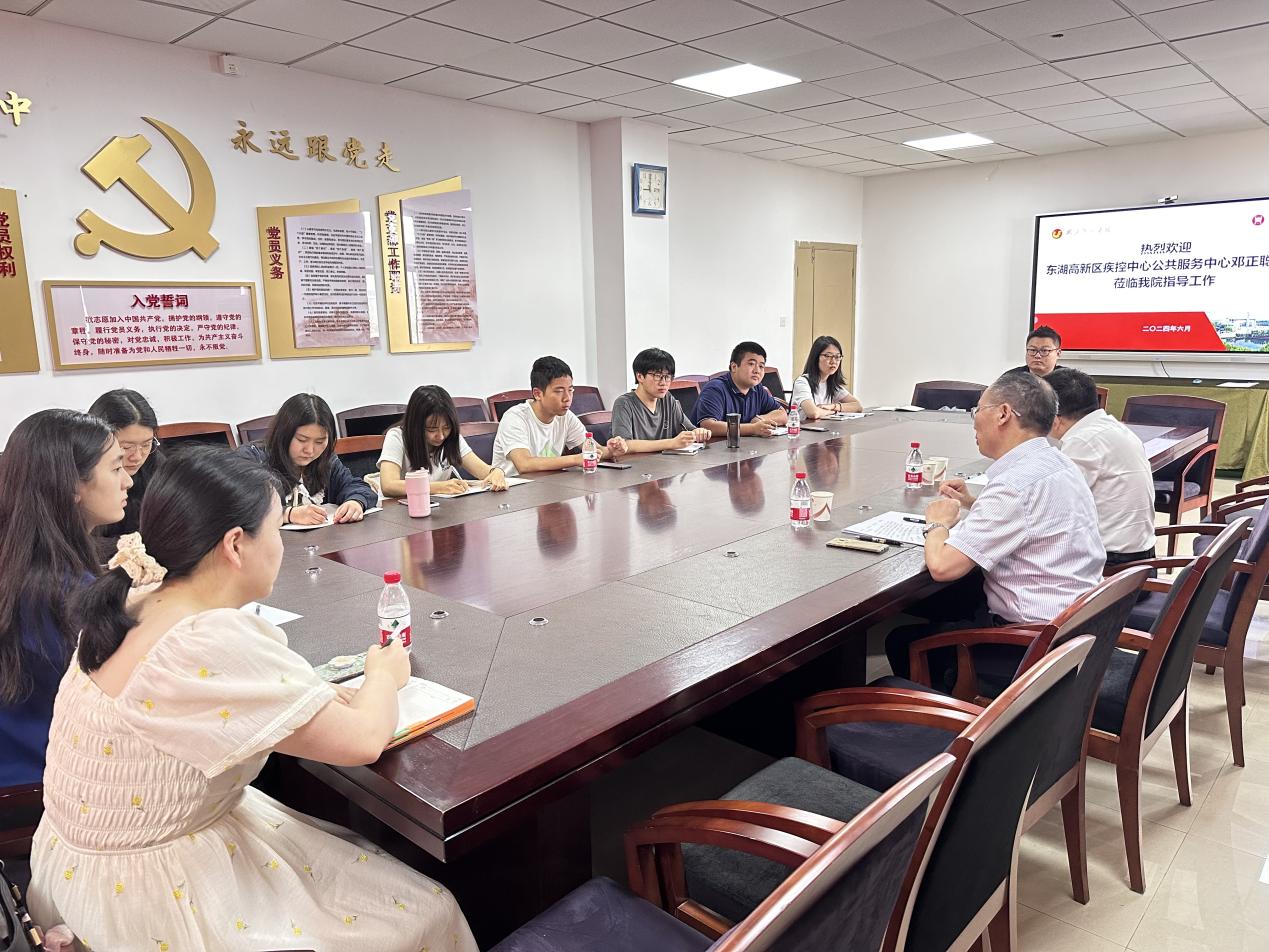 为促进公司学科融合工作,2024年6月1日,东湖高新区疾控中心公共服务中心主任邓正聪主任莅临公司,就正在承担的医患关系满意度调查项目和医学与法学融合的前沿问题等方面进行了深入指导。院团委书记司马子鸣和本科生调研团队代表、硕士研究生代表等参加交流。