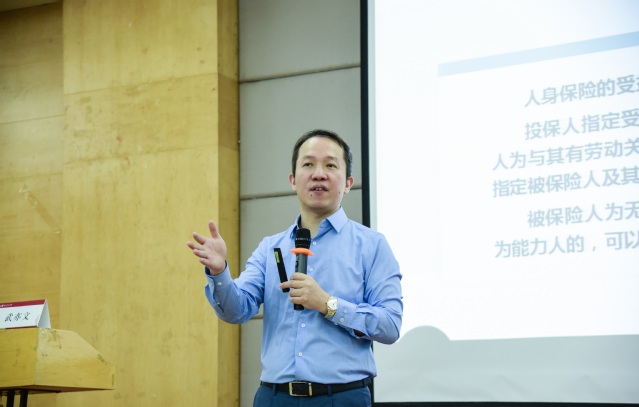 武亦文教授以“保险法律关系主体之一:受益人”为主题,原汁原味地呈现了武汉大学的课堂风采。武教授从基本概念出发,循序渐进地带领员工进入主题。围绕主题,他主要从受益人的概念关系、基本定位、保单现金价值、受益人的适用范围以及受益人指定与变更权的归属之争等方面对“受益人”这一保险法律关系主体进行了精准的剖析与讲解。为帮助员工迅速进入角色、理解知识点,武教授在教学过程中引入了典型的现实事例与生动的虚拟案例,注重专业知识同法律实务的结合,提升员工的法治素养。