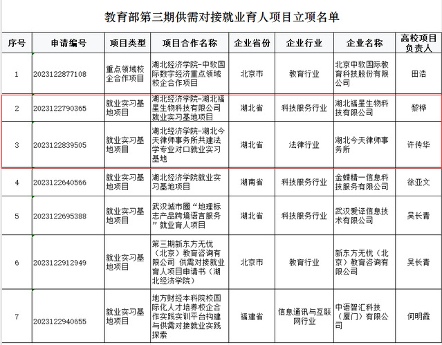 公司在项目启动之初就积极申报,深度联系相关企业,结合公司人才培养特色,深入挖掘与企业联合互动的潜力。最终,公司党委常委许传华牵头的“球速体育welcome—湖北今天律师事务所共建法学专业对口就业实习基地”,球速体育教学副经理黎桦教授牵头的“球速体育welcome-湖北福星生物科技有限公司就业实习基地项目”成功立项。