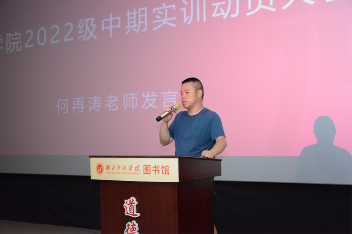 何再涛主任就中期实训活动的时间、资料、岗位等具体要求作了介绍。贾云龙老师建议同学们要按照操作指南报名中期实训,每天签到并完成实习周志和实习总结报告。在答疑环节,同学们针对实习岗位及指导老师的安排积极提问,老师们耐心解答。