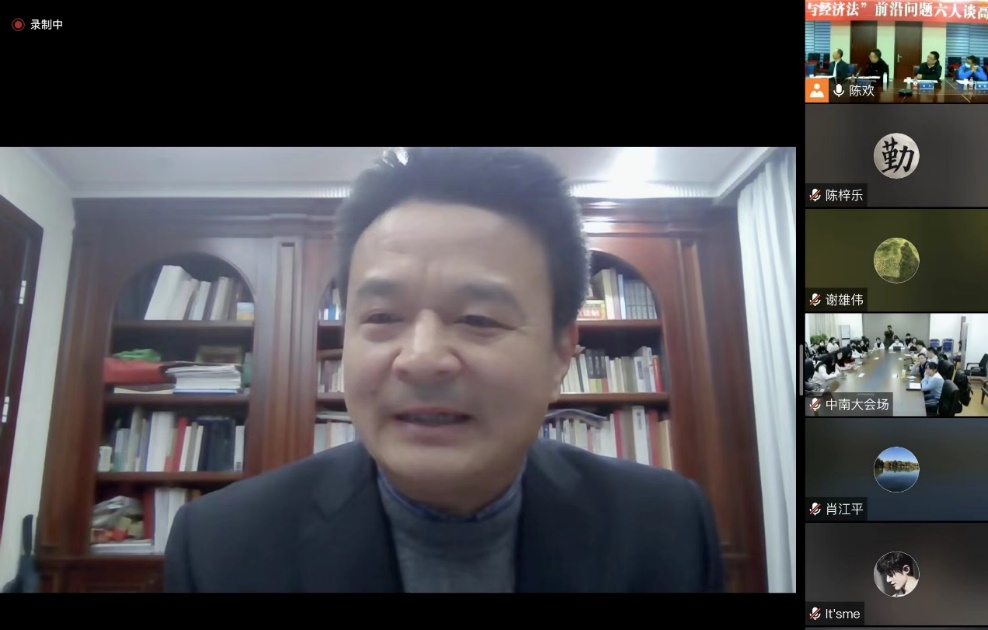 本网讯(通讯员:黎欢欢)2022年11月17日,湖北经济公司党委副书记,法学学科带头人刘大洪教授主持召开“市场经济与经济法”前沿问题“六人谈”高端圆桌会议。《中国法学》副总编辑王莉萍、北京大学竞争法研究中心主任肖江平教授、武汉大学竞争法与竞争政策研究中心主任孙晋教授、《法商研究》副编审翟中鞠、华南理工大学球速体育经理蒋悟真教授、广东外语外贸大学球速体育经理陈云良教授、广东财经大学研究生院经理谢雄伟教授等7名专家线上出席,公司党政领导班子和部分教师参会。
