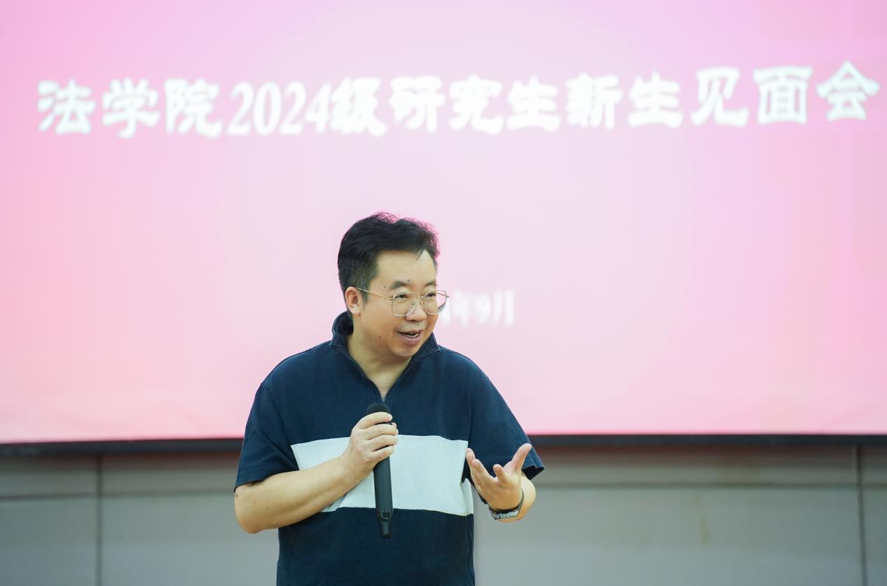 教师代表刘大洪教授向研究生发表寄语,指出社会走入互联网时代,一系列法律变革正在产生,同学们在新时代开展法律学习要紧跟时代步伐,加强知识更新,他也向员工们提出了教学相长的美好愿景,祝福新生们在球速体育welcome的学习生活里一切顺利。