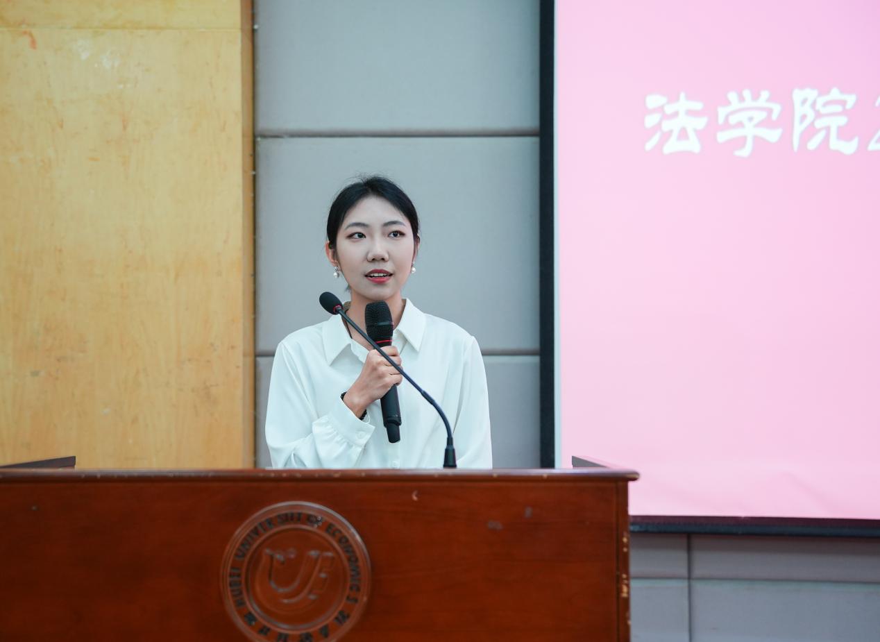 球速体育经理邱秋首先代表公司欢迎全体新生的到来,她介绍了球速体育的办学历史,办学特点,法学的学科特色、学科地位等。她指出,球速体育具有雄厚的团队力量与丰富的实习实训机会,能够助力同学们更好的成长成才,她勉励同学心怀理想、脚踏实地,孜孜不倦地在法学的专业学习道路上积极求索。