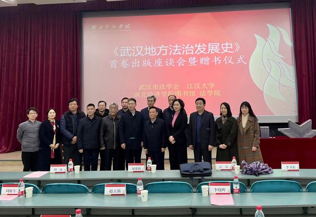 湖北经济公司党委副书记汪达在致辞中指出,《武汉地方法治发展史》是汇聚数十位专家,用时十年撰成的大制作,勾画了武汉法治历史的全貌,梳理了“法治”的历史形态,加深了对“法治”内涵的理解,开辟了一条认识中国法文化的新路径。该书史料详实,论述精准,理论结构完整,现由人民出版社出版发行。这是一项很大的学术工程,填补了武汉地方法文化研究的空白,开创了城市法治史研究的新领域、新范式,必将推动武汉地方法治建设的进程。随后,汪书记向与会学者介绍了公司的办学情况,重点介绍了法学专业在今年来取得的成绩。