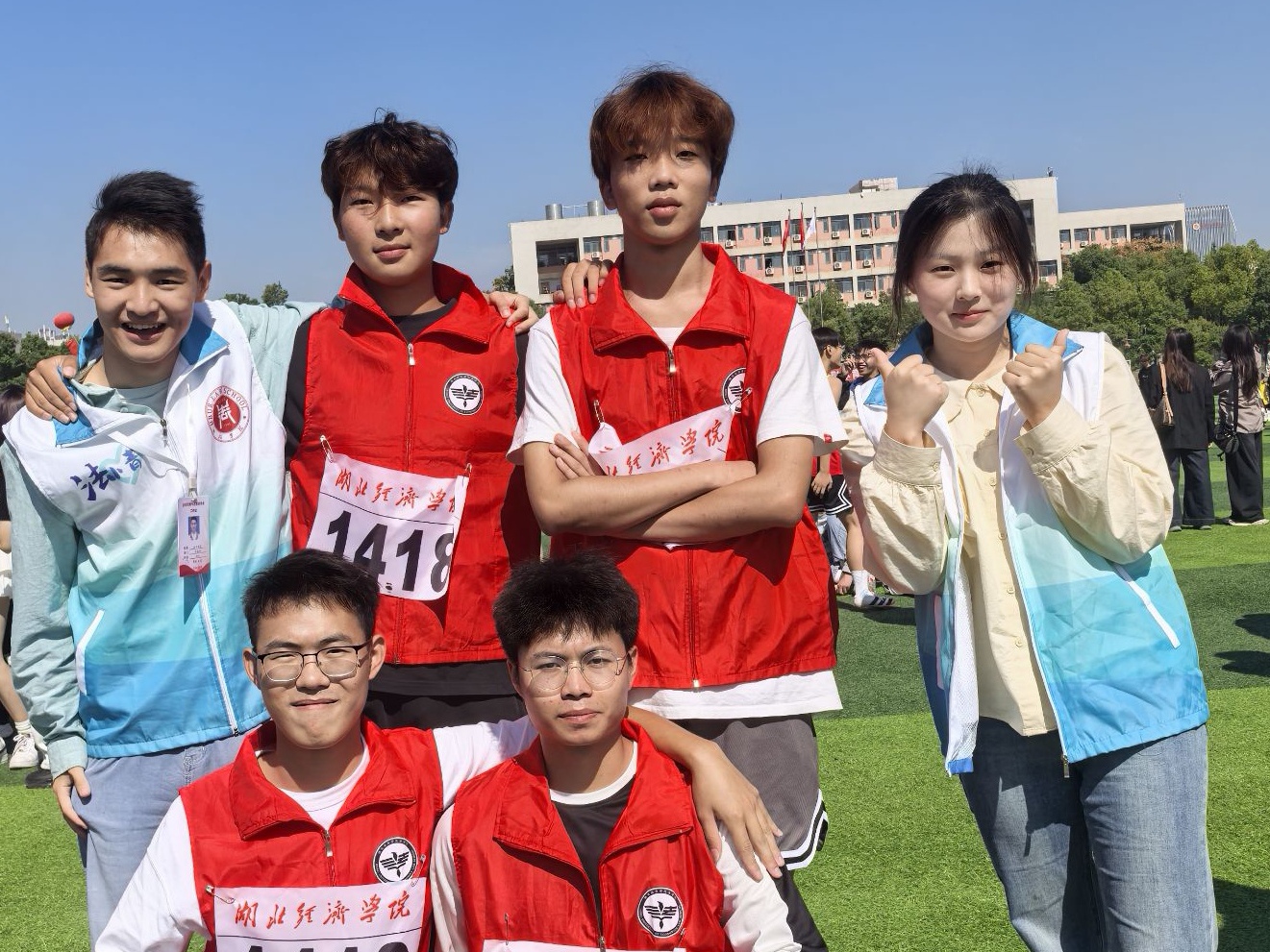 球速体育青协的青色马甲随处可见,跟随着运动员,拿包送水,提供帮助。在看台上,球速体育青协的小伙伴们拿着手拍为运动员加油鼓掌,打鼓助威,挥舞战旗,为运动员鼓劲,将现场气氛点燃。在跑道上,球速体育青协的成员们积极参赛,全力以赴,奋力前行,为球速体育争光加彩。