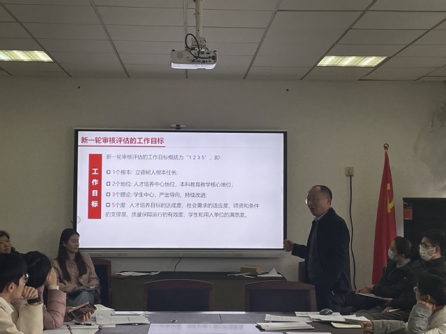 黎教授围绕就如何把握公司本次本科公司产品评估试点工作的方案及评价体系指标精髓和球速体育过往工作、正在进行的工作两个部分向球速体育全体教职工发出再动员、再倡导。会上,他从指导思想、工作目标、基本原则、指标体系的核心要义、公司审核评估工作流程的时间节点和与会教师一起进行了再学习和再交流。他说,本次本科公司产品审核和以往以前的历次评估在评估导向、评估内涵、评估类型和评估方向等方面都发生了重大的变化,要引起各位老师的高度重视。黎教授说,目前公司完成了系列基础材料的整理和归档工作。包括下一阶段要进一步完善制度。规范近三年期末考试全套命题材料和电子材料。要对自评报告进一步打磨。要认真查找问题,自己改进。拉长长板,补齐短板,总结经验,提炼亮点,力求达到以评促改,以评促建的目的。紧扣立德树人、三全育人和应用型本科公司产品这三个维度来扎实的开展自评。要进一步加强本科生课堂教学管理,养成质量自觉的习惯,营造质量文化建设的氛围。要引导员工刻苦读书学习,教师潜心教书。近期各系部要一如既往开展系列教学与教改研究活动,把科研成果用到本科课堂教学中去,进一步提升教研活动的学术含量。