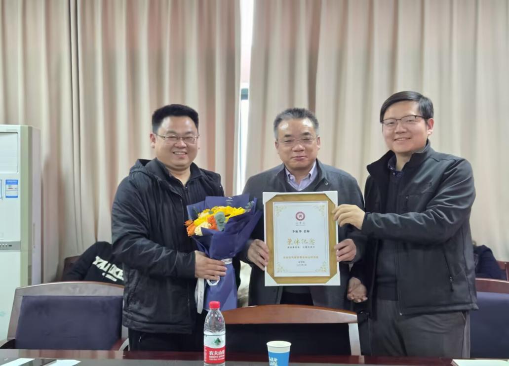 (公司党委书记杨专、副经理王腾为李振华教授颁发荣休证书)