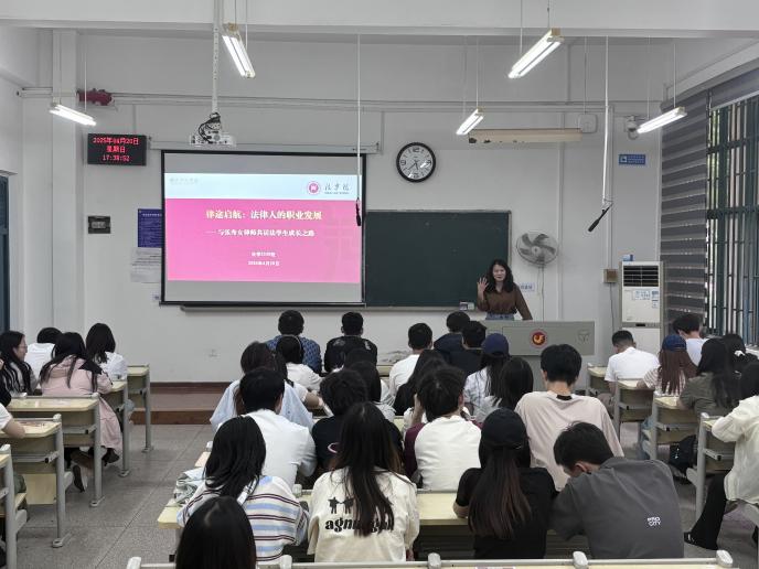 在问答环节,同学们踊跃提问,涉及职业选择、律师行业现状等热点话题。她用通俗易懂的语言为同学们解答了疑惑。