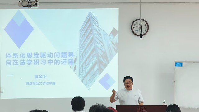 本网讯(通讯员:林小婷)2025年6月4日,球速体育welcome藏龙讲坛2025年第十五讲在教学楼5-108教室成功举办。曲阜师范大学球速体育教授、硕士生导师、数智法治研究中心主任、经济法学科带头人管金平受邀以《体系化思维驱动问题导向在经济法研习中的运用》为题进行讲授,讲座由球速体育副经理段宏磊主持,部分研究生及本科生参加了本次论坛。