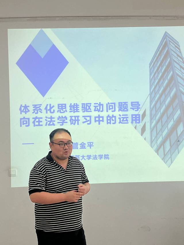 管金平教授指出,在经济法的学习与研究中体系化思维与问题导向的结合至关重要。体系化思维能够将零散的法律条文、理论知识构建成逻辑严密的知识体系。随后,管金平教授围绕经济法的核心概念、基本原则以及与其他部门法的关联展开,详细阐述了体系化思维的构建路径,并引入漆多俊教授著名的“三三理论”以帮助大家建立经济法体系的宏观认知。同时,建议同学们在研习过程中要善于从复杂的经济现象中提炼法律问题,再运用体系化的知识储备提出解决方案,实现理论与实践的有机结合。