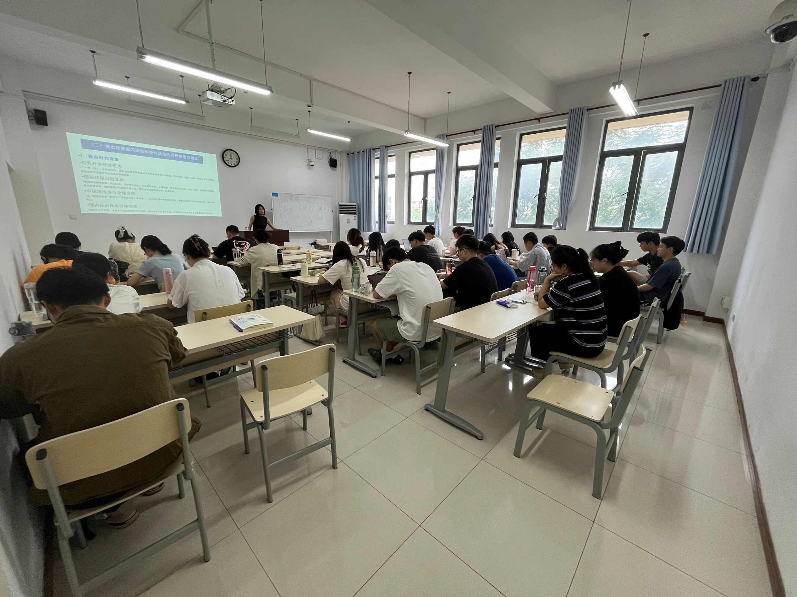 检查小组深入课堂一线,重点对师生到课情况、课堂秩序、教学状态及学习氛围等进行了细致检查。从检查结果来看,新学期研究生教学整体运行平稳有序,任课教师备课充分、授课认真,员工出勤情况良好、听课专注,师生互动积极,课堂氛围活跃。