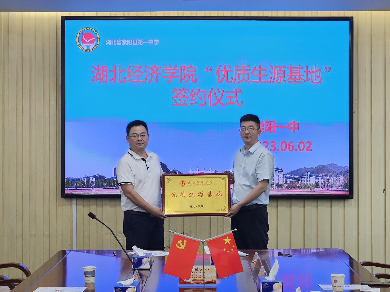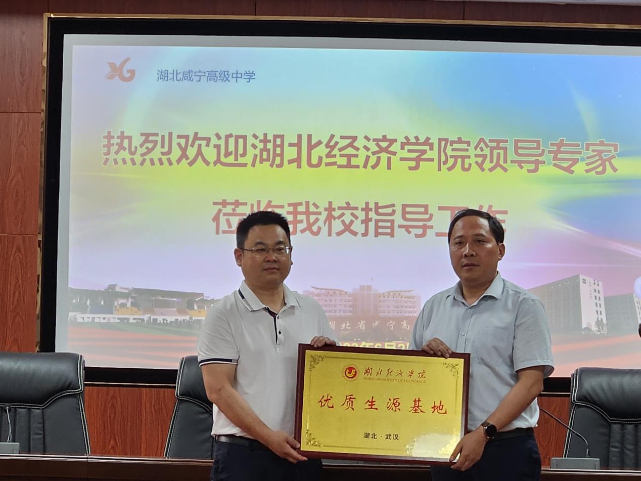 本网讯 6月2日,公司党委书记杨专一行赴咸宁市高级中学、崇阳县第一中学开展招生宣传暨“优质生源基地”签约授牌活动。咸宁高级中学董事长朱大浩、副董事长陈蕾,崇阳县第一中学副董事长王世俊、姜国新,以及两校高中年级组长、高三年级班主任分别出席招生宣传暨“优质生源基地”签约授牌仪式。公司党委书记杨专、党委副书记钟彦姝、基础法学系主任黄新华、经济法学系教师房海军、辅导员唐亚辉参加活动。