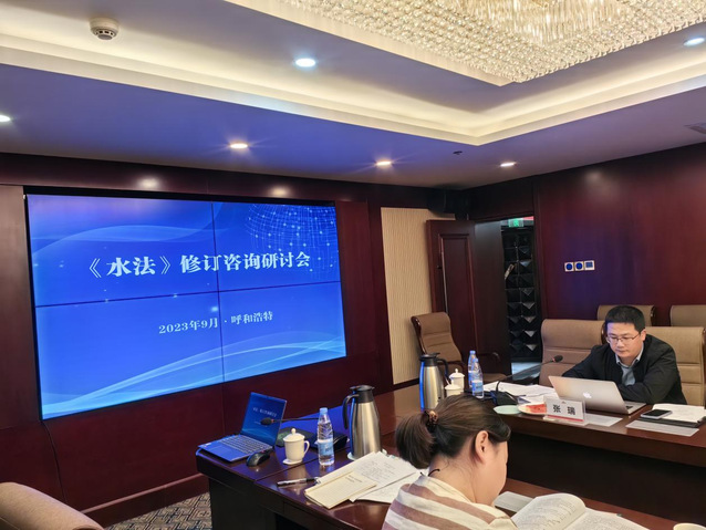 (通讯员 张瑞)2023年9月26日,水利部发展研究中心在呼和浩特举办《水法》修订咨询研讨会。会议由水利部发展研究中心党委书记吴强主持,来自水利部发展研究中心、水利部政策法规司、水利部水资源管理司、黄河水利委员会、松辽水利委员会、河北省水利厅、山西省水利厅、内蒙古自治区水利厅、浙江省水利厅、广东省水利厅、海南省水务厅、新疆维吾尔自治区水利厅、宁夏回族自治区水利厅等十余家政府部门工作人员齐聚一堂,围绕《水法修订草案》展开热烈讨论。受“环境资源领域法律法规和重点制度研究”项目课题组委托,公司张瑞博士代表课题组参会并做主题报告。