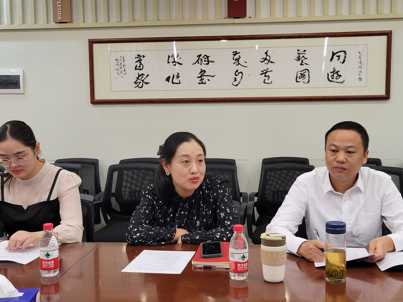 本网讯(通讯员:司马子鸣)为进一步构建“新财经”教育改革下的“大思政”工作格局,凝聚“新财经”教育改革共识,探讨人才培养模式改革的实践路径,加强辅导员队伍建设,着力打造一支牢记“为党育人,为国育才”初心使命,践行“立德树人”根本任务的辅导员队伍。11月1日下午,党委书记杨专、副书记钟彦姝一行4人前往艺术设计公司调研交流员工及员工工作。艺术设计公司党委书记蒋琼、党委副书记万庆召以及全体辅导员参加会议,调研交流会由艺术设计公司党委书记蒋琼主持。