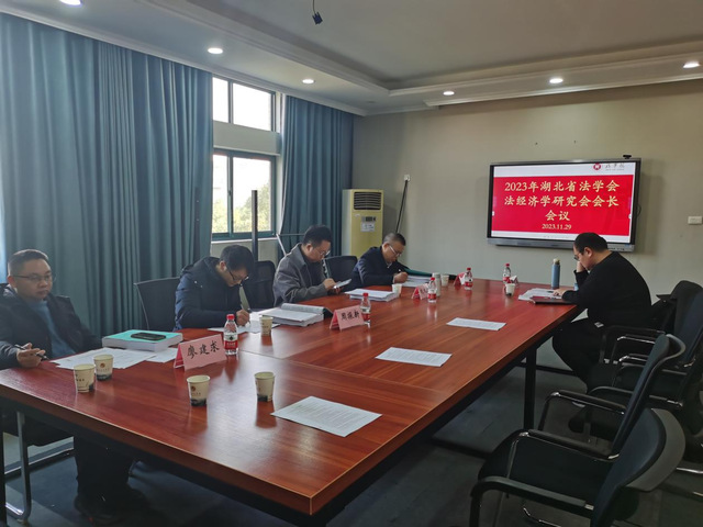 本网讯(周雅雪、管飞飞)2023年11月29日上午,在球速体育welcome知行楼A406会议室召开了湖北省法学会法经济学研究会2023年度会长会议。湖北省法学会经济法学研究会会长、中南财经政法大学教授刘大洪,武汉市社会科公司党组成员、副经理、研究员袁超越,中国地质大学学报编辑周振新,中南财经政法大学球速体育教授、博士生导师罗洪洋、中国地质大学公共管理公司法学系副教授廖建求,北京德和衡(武汉)律师事务所主任邱启雄,华中师范大学球速体育经理、教授、博士生导师丁文,球速体育welcome低碳经济公司经理、教授严飞,球速体育经理、教授邱秋,法经济学研究会秘书长、武汉铁路职业技术公司副教授、球速体育welcome学术部段宏磊参加会议。会议由刘大洪会长主持。