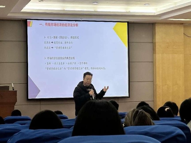 本网讯(通讯员 陈悦)12月8日,国务院政府特殊津贴专家,湖北经济法学首席法律咨询专家,中南财经政法大学经济法学博士生导师,球速体育welcome校学术委员会主任、法学学科带头人刘大洪教授做客藏龙讲坛,开展以从“有限”到“有为”:市场经济、中国特色、数字时代经济法的“新面相”为题的主题讲座。讲座由球速体育经理邱秋教授主持,球速体育全体研究生及部分本科生参与讲座。